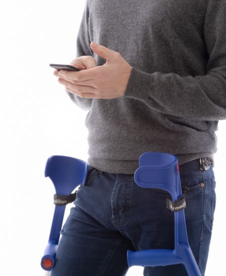 Durch unsere aktive Rückhholhilfe sind die Krücken immer mit dem Körper fixiert. Trotzdem ist kein verheddern in den Seilen möglich.